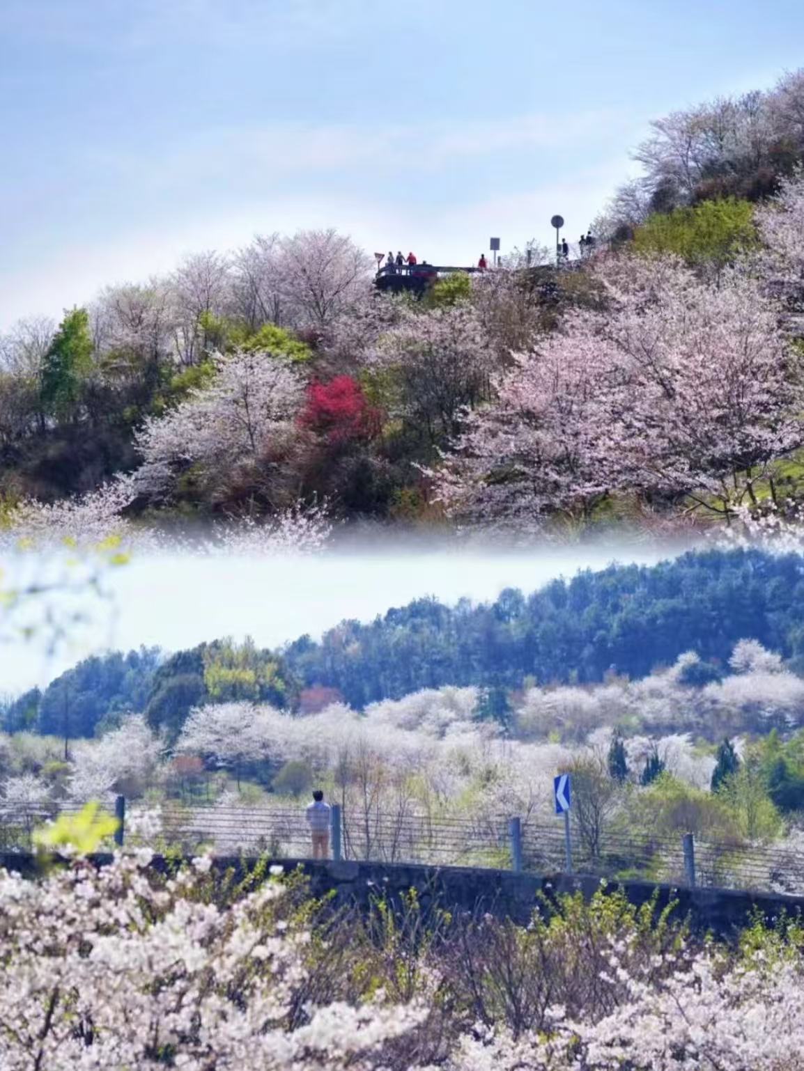 要看四明大桥的樱花可以登上徐凫岩玻璃栈道 虽然看不到发夹弯那边 不过也能感受到上帝视角的樱花盛宴