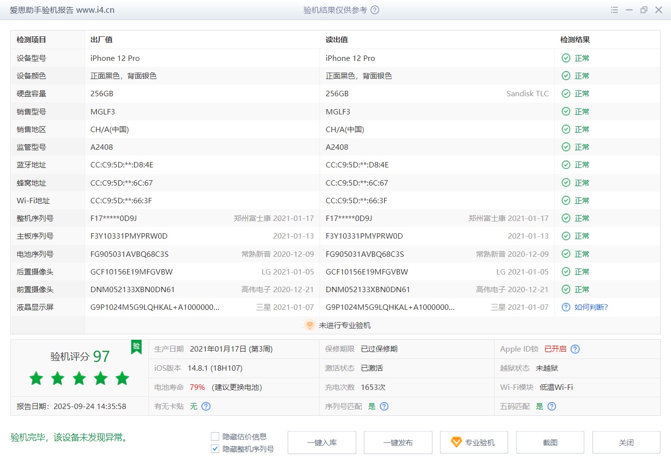 自用退役12pro,信息爱思图看,无拆无修无磕碰,全原,边框应该是壳子带久了没摘掉里面的灰尘啥的氧化的吧,该有的信息文字及下面图片都有了,别问无关紧要的问题了,北仑面交,价格1800,微电15888030718