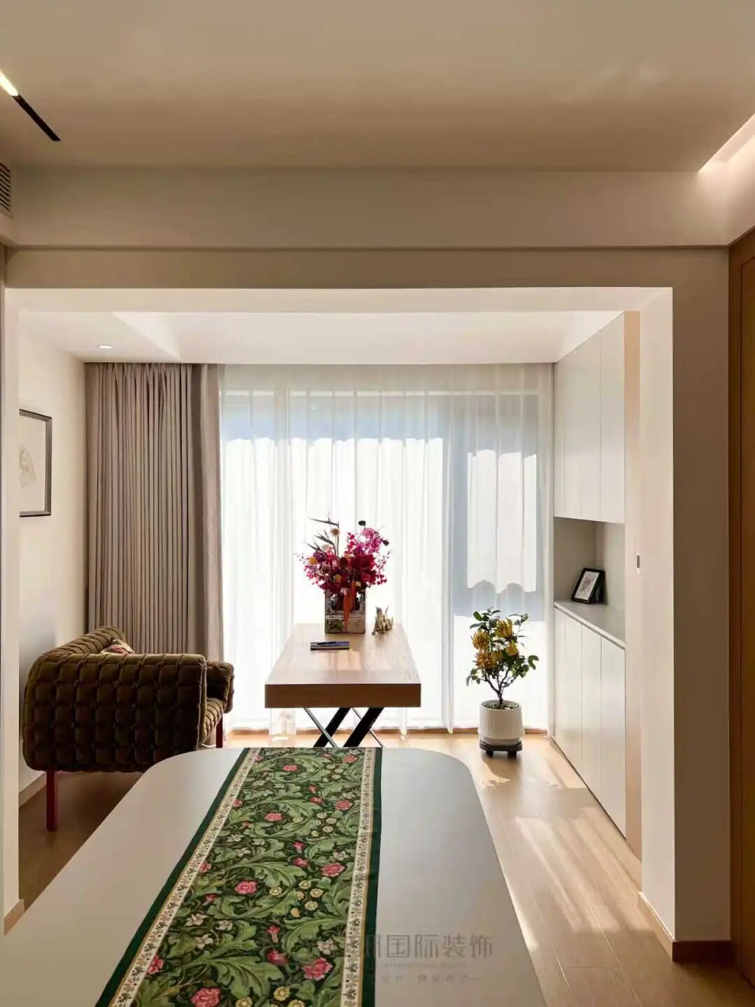 那面锦旗并非简单的装饰,它承载着业主从期待到满意的完整历程。“施工精湛”四字背后,是无数次对细节的严苛把控——从墙面漆面的平整度到灯光角度的微妙调整;从隐蔽工程的严谨排布到收口工艺的完美呈现。 “设计大师”则指向另一种创造——将抽象的生活理想转化为可触可感的物理空间。在这里,每一个转角、每一道光影、每一处材质碰撞,都经过深思熟虑的设计推敲。