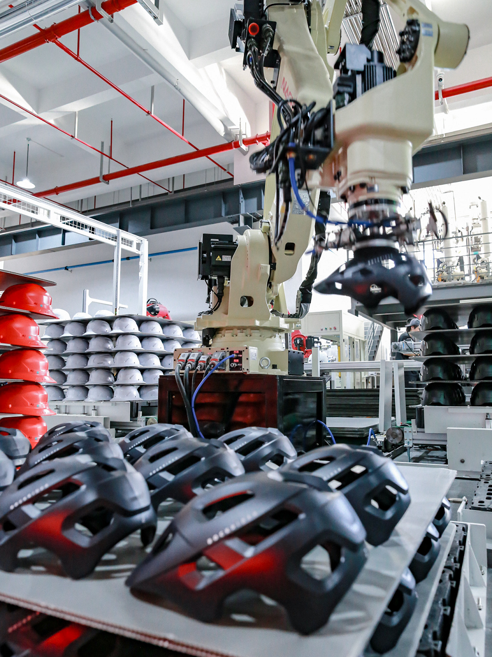 这场“空间魔术”,还在新碶街道全域内迅速铺展。在大港片区,“腾笼换鸟”行动如火如荼:宁波天旗科技有限公司的智能制造工厂里,机械臂灵活舞动,精准完成运动头盔的注塑、打磨工序,这条全自动化生产线就建在企业原址改建的新厂房内,通过低效用地改造实现产能翻倍;宁波北仑金阳装饰有限公司将20亩老旧厂房推倒重建,容积率提升至2.5,按丙类厂房标准打造后,整体出租给宁波常青家居用品有限公司,10年以上的长租协议更让企业吃下“定心丸”,安心扎根发展。