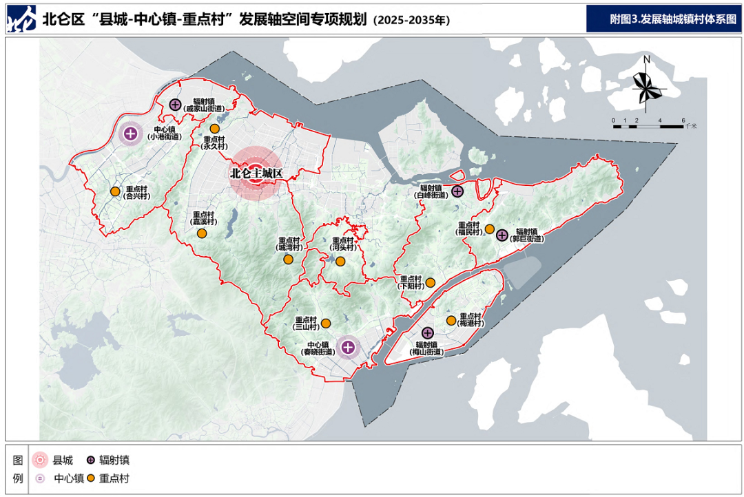 此专项规划近期以创新发展为主线,集中资源谋划“科创策源·智荟浃江发展轴”,以北仑城区为主引擎,带动中心镇-小港街道,辐射镇-戚家山街道,重点村合兴村、永久村提质发展。通过加强强城带动力、激发兴村内生力、提升融合凝聚力,打造以自贸区、甬江科创区为平台载体的“双擎驱动,一流创新策源地”和以小浃江郊野公园为标识性区域“五园共生,浃江梦里水乡”两大共富场景,促进资源要素双向流动,引导优质要素向农村地区流动和覆盖,进一步将兴村融入强城建设,赋能城市发展。