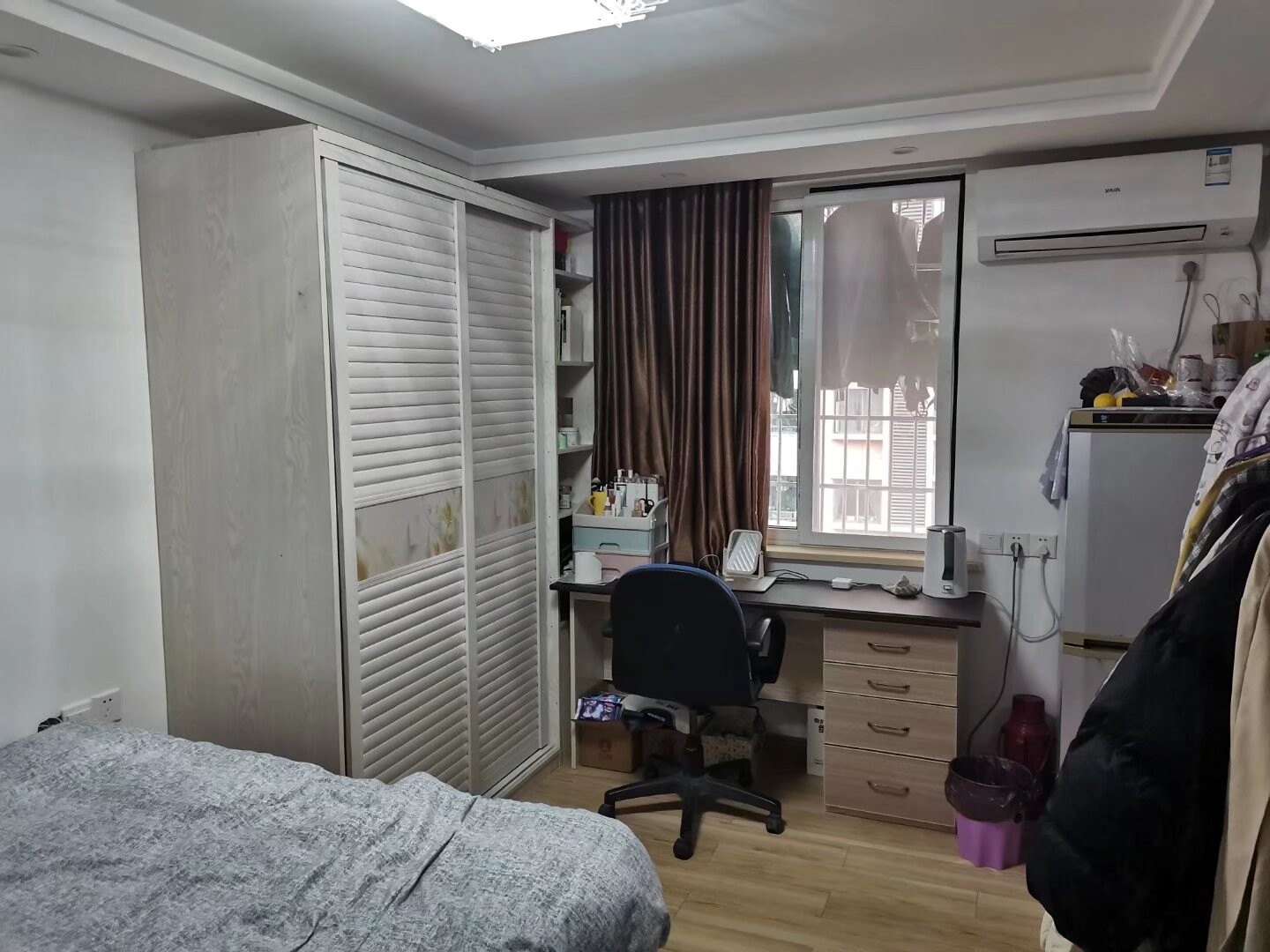 大床 水电 宽带 管道气 有线电视 电话 冰箱 洗衣机 热水器 空调 微波炉 油烟机 饮水机 桌椅 衣柜 超大镜子 独立阳台